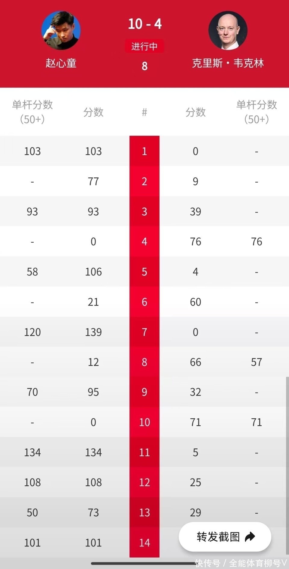 吴宜泽与韦克林的这场比赛,他在第一阶段有一个极其好意思满的开局,6-2遥遥卓越,告捷似乎就在咫尺。关联词第二阶段风浪突变,吴宜泽情景全无,韦克林则轰出8连鞭,总比分10-6逆转晋级。而在逆转吴宜泽之后,这位苏格兰公开赛冠军挑战世锦赛冠军赵心童。